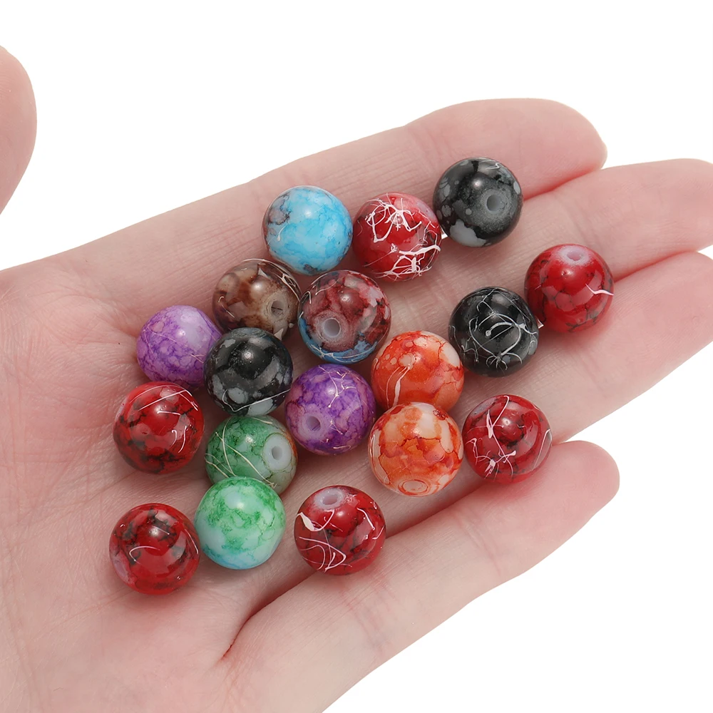 20-100pcs 4/6/8/10mm Glass Crackle Round Bead Colorful Pattern Loose Spacer Beads For DIY Making Jewelry Bracelets Accessories