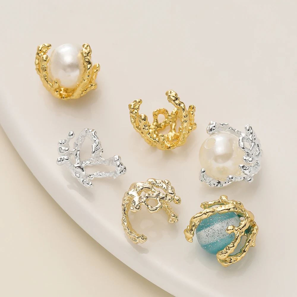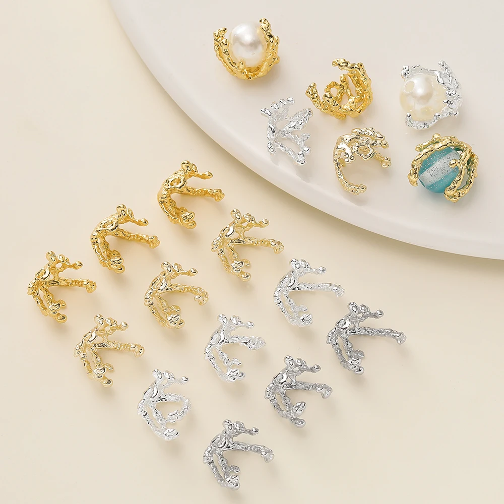 2Pcs/Pack 13*13mm 14/18K Gold Color Plated Flower Shape Special Beads Caps for Diy Jewelry Making Earrings Accessories